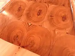 Oystering or oyster veneer is a decorative form of veneering, a type of parquetry.[1] This technique is using thin slices of wood branches or roots cut in cross-section, usually from small branches of walnut, olive, kingwood and less commonly laburnum, yew and cocus.[1] The resulting circular or oval pieces of veneer are laid side by side in furniture to produce various decorative patterns.[2] Because the shape formed resembles an oyster shell the technique acquired the name of oyster veneering.[3][4]