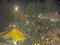 The Princeton Reunions are an annual college reunion event held every year on the weekend before commencement at Princeton University. Known simply as "Reunions", this event brings back to campus upwards of 25,000 alumni and guests for a four-day celebration featuring large outdoor tents, elaborate costumes, sporting events, alumni and faculty presentations, fireworks, and bands from rock to swing.