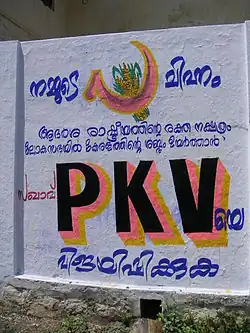 Padayatt Kesavapillai Vasudevan Nair (2 March 1926 – 12 July 2005), popularly known as PKV, was an Indian politician and lawyer who served as the 7th Chief Minister of Kerala from 1978 to 1979. He was a Member of the Lok Sabha from 1957 to 1971 and again from 2004 until his death in 2005. He became Chief Minister on 29 October 1978,[7] following A. K. Antony's resignation as Chief Minister.[8] However he resigned on 7 October 1979 owing to differences with other parties in the United Front. He served in the Kerala Legislative Assembly from 1977 to 1982. Nair was a senior member of the Communist Party of India.