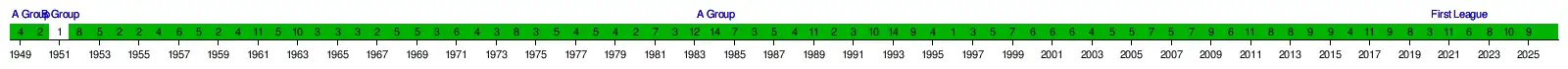 | 2024–25 | First League, 9th of 16 | ||