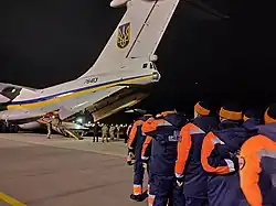A Ukrainian Air Force Ilyushin Il-76 prepares to depart for Iran from the Boryspil International Airport with specialists from the National Bureau of Investigation of Civil Aviation and Incidents with the Civil Aviation Service, State Aviation Service, Ukraine International Airlines and from the General Inspectorate of the Ministry of Defense of Ukraine.