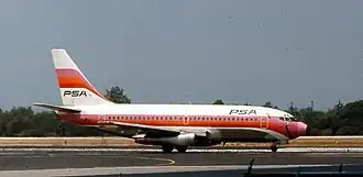 Pacific Southwest Airlines (PSA) was a low-cost airline in the United States headquartered in San Diego, California, that operated from 1949 to 1988. It was the first substantial scheduled discount airline. PSA called itself "The World's Friendliest Airline" and painted a smile on the nose of its airplanes, the PSA Grinningbirds.[2] The Los Angeles Times called PSA "practically the unofficial flag carrier airline of California for almost forty years."[3]