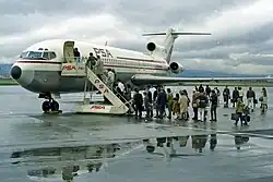 In late summer 1970, PSA ordered five Lockheed L-1011 widebody aircraft, deliveries starting 1972.[75] In the next 12 months, the L-1011 engine maker, Rolls-Royce, went bankrupt, and Lockheed required a US government bailout to avoid the same. In December 1971, PSA cancelled the order, but Lockheed said it couldn't.[76] In September 1972, PSA signed a new order, deliveries starting 1974.[77] PSA grounded its two L-1011s after eight months.[78][79] A 300 seat aircraft never made sense in a business model that depended on quick aircraft turnarounds. Economics presented to the CPUC showed L-1011 per-seat costs no better than a 727 despite being twice as large. PSA refused the last three aircraft and was stuck paying a 15-year lease on the first two.[80] It entered into years of litigation with Lockheed.[44]