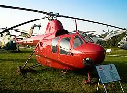 - Four-seat light general-purpose helicopter of 1957, seating a pilot and three passengers. Visible changes are: raised roof above a cabin, blunter nose shape, and horizontal bottom windows' line instead of slanted.