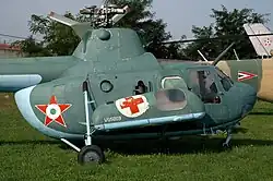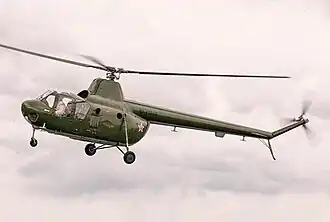 The Mil Mi-1 (USAF/DoD reporting name "Type 32",[2] NATO reporting name "Hare"[3]) was a Soviet three- or four-seat light utility helicopter. It was the first Soviet helicopter to enter serial production. It is powered by one 575 hp (429 kW) Ivchenko AI-26V radial piston engine. It entered service in 1950 and was first seen on the 1951 Soviet Aviation Day, Tushino and was produced for 16 years. More than 1,000 were built in the USSR and 1,594 in Poland, as SM-1.