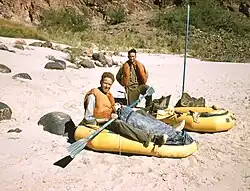 Pioneering use of packrafts is difficult to trace, as float tubes, inner tubes, and other small boats can in some of their uses be considered equivalent to packrafts, and have been used around the world for over a century, beginning with the Halkett boat. However, Dick Griffith is documented to have used a packraft to descend Copper Canyon's Urique River (Chihuahua, Mexico) in 1952[1] before introducing them to the Alaska Mountain Wilderness Classic adventure race in 1982. Packrafts are now common equipment in that race.[2] Neal Newby and Frank Moltzen paddled two packrafts down the Colorado River in Grand Canyon from the confluence of the Paria River to the confluence of Bright Angel Creek in August 1956.[3] A variety of companies have made durable packrafts in the past including Sherpa, Curtis, and American Safety. Furthermore, aviator emergency rafts have been used for packrafting purposes in a variety of applications. Pioneering use of packrafts also consisted of using boats intended as pool toys or lake craft in moving water while carrying gear or passengers. The discomfort of these non-durable boats led to the invention and marketing of the modern packraft.