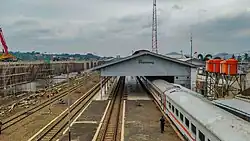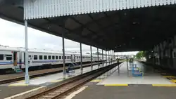 Padalarang Station[1] is a railway station complex in Padalarang, West Bandung Regency, West Java, Indonesia. The complex is planned to serve long-distance train services from Kereta Api Indonesia, commuter trains from KAI Commuter, and Jakarta-Bandung high-speed trains from Kereta Cepat Indonesia China (KCIC). The complex is in the form of two different station buildings, each operated by KAI and KCIC, and connected via a pedestrian bridge.