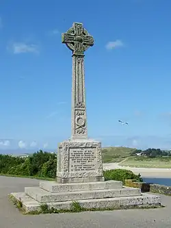 There are two Cornish crosses in the parish: one is built into a wall in the old vicarage garden and another is at Prideaux Place (consisting of a four-holed head and part of an ornamented cross shaft). There is also part of a decorated cross shaft in the churchyard.[16]