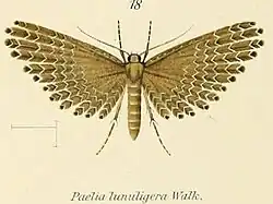- ^ Beccaloni, G.; Scoble, M.; Kitching, I.; Simonsen, T.; Robinson, G.; Pitkin, B.; Hine, A.; Lyal, C., eds. (2003). "Paelia lunuligera". The Global Lepidoptera Names Index. Natural History Museum. Retrieved May 11, 2018.