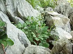 With its hairless leaves, P. daurica, does not seem to be adapted to a typical Mediterranean climate, but to rather more humid circumstances in summer. The population on Mount Orjen grows in forest consisting of silver fir, European beech, Turkish hazel, the maple species Acer pseudoplatanus and A. intermedium, and ash, and is further accompanied by widespread species such as European spindle, mountain cherry, drooping bittercress, Turk's cap lily, but also with endemics such as the Orjen iris.[6]