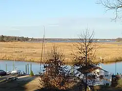 The immediate shoreline consists primarily of embayed and extensive marsh. There are also small sections of shoreline consisting of fringe marsh or artificially stabilized (bulkheads). The predominant upland use is agriculture. Other uses include, in order of predominance: unmanaged woodland, residential(Battery Park, Moonfield, Pagan Point, Pinewood Heights and newer development), commercial (commercial marinas, commercial docks, and businesses along the north and east side of Church Street between the Cypress Creek Bridge and the Pagan River Bridge), industrial(the Smithfield Packing Company and Gwaltney of Smithfield plants), and recreational (Carrollton Nike Park and newer development).[5]