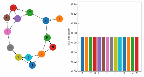 where are the pages under consideration, is the set of pages that link to , is the number of outbound links on page , and is the total number of pages.