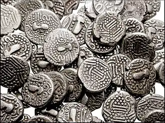 Chaulukya coins were often called "Gadhaiya Paise" (9th–10th century CE).[4] Until the 1950s in India and Pakistan (and before 1947 in British India), the paisa (back then spelled as pice in English) was equivalent to 3 pies, 1⁄4 of an anna, or 1⁄64 of a rupee. After the transition from a non-decimal currency to a decimal currency, the paisa equaled 1⁄100 of a rupee and was known as a naya paisa ("new paisa") for a few years to distinguish it from the old paisa(pice) that was 1⁄64 of a rupee.