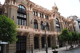 The Palacio Valdés Theatre is located in Avilés, Principality of Asturias in Northern Spain. The building was designed by the architect Manuel del Busto at the beginnings of the 20th century. This architect planned a theatre in Neobaroque style with longitudinal layout, in parallel to the front façade because of the technical problems related to the chosen location. The 'First Stone' solemn act took place on 5 August 1900. Clarín, the famous writer was one of the most important people who attended that event. Mainly because of economical problems, the works had to stop several times so that the building was not finished until 20 years later. The inauguration act took place in 1920, when the building received the name of the famous writer Armando Palacio Valdés, "hijo adoptivo" of the town, who attended the first performance.