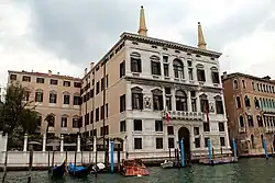 In 1748, the palace came to hands of the Tiepolo family.[2][3] In 1745, the palace and remaining painting collection was sold to the elector of Saxony for 100,000 zecchini. The paintings were moved to the Gemäldegalerie Alte Meister of Dresden.[4] In the 1700s, the piano nobile was decorated by Giandomenico Tiepolo with frescoes of The charlatan and The Minuette .[5] His father, Giambattista Tiepolo circa 1750, also putatively painted one ceiling.[6][7]
