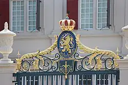 Noordeinde Palace (Dutch: Paleis Noordeinde, Dutch pronunciation: [paːˌlɛis noːrtˈɛində] ⓘ) is one of three official palaces of the Dutch royal family.[2] Located in the city centre of The Hague in the province of South Holland, it has been used as the official workplace of King Willem-Alexander and Queen Máxima since 2013.[3] The Noordeinde Palace and its surrounding palace grounds are property of the Dutch State.[4]