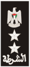 | Brigadier General عميد ʿamīd | Colonel عقيد ʿaqīd | Lieutenant Colonel مقدم muqaddam | Major رائد rāʾid | Captain نقيب naqīb | 1st Lieutenant ملازم أول mulāzim ʾawwil | Lieutenant ملازم mulāzim | ||||||||||||||||||||||||||||||