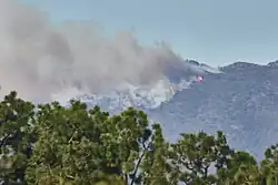 The Los Angeles premieres of Wolf Man, One of Them Days and Unstoppable were canceled due to the fire.[89][90][91] The property damage caused by the fire has resulted in vast liabilities for home insurance companies.[92] In particular, due to other insurers pulling out of the region, the California FAIR Plan had approximately $6 billion of exposure in the area covered by the Palisades Fire as of January 8, 2025.[93] Air tankers dropped thousands of gallons of red flame retardant in the hills around Los Angeles as firefighters attempted to limit the devastation from multiple wildfires.[94]