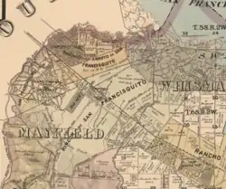 The township of Mayfield was formed in 1855, around the site of a stagecoach stop and saloon known as "Uncle Jim's Cabin" near the intersection of El Camino Real and today's California Avenue in what is now southern Palo Alto.[19] In October 1863 the San Francisco to San Jose railroad had been built as far as Mayfield and service started between San Francisco and Mayfield (the station is now California Avenue); train service all the way to San Jose started in January 1864.[20][21] El Camino became Main Street; the northeast–southwest cross streets were named for Civil War heroes, with California Avenue originally being Lincoln Street. The town had its own newspaper by 1869 (the Mayfield Enterprise, in English and Spanish), incorporated in 1903, and had breweries and a cannery.[19]