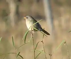 The Pampa finch (Embernagra platensis), also known as the great Pampa-finch, is a species of bird. It was traditionally placed in the family Emberizidae but molecular phylogenetic studies have shown that it is a member of the tanager family Thraupidae.