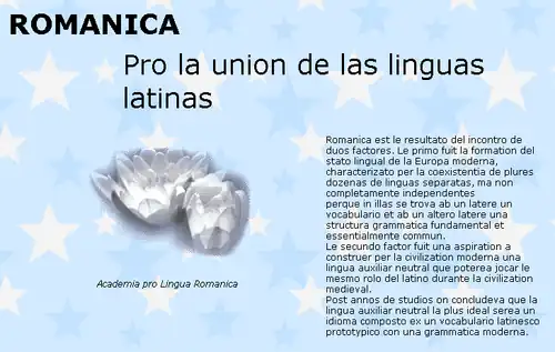 Interlingua Romanica (or simply 'Romanica') is a Romance zonal auxiliary language proposed to be used as a regional international auxiliary language for the Latin world. It is a reformed version of the constructed international auxiliary language Interlingua and was developed in 2001 by the English-speaking Canadian interlingualist Richard Sorfleet and the Spanish- and Basque-speaking Basque school teacher Josu Lavin. They presented it on the internet that same year on Latinity's Day (15 May, a celebration established by the Latin Union).
