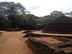 From the south and north areas of the palace are remains of several monasteries belonging to the Panchayathana architectural style. Stupa, image houses, Bodhighara and dwelling houses are available in each monastery. Besides the Sinhalese inscriptions there is a Tamil inscription belonging to the reign of Nissankamalla, in one monastery premises.[3]