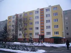 The structure of Hungarian cities in the immediate post-war period consisted of a historic core surrounded by mostly single-story buildings and workers' houses, predominantly on unpaved streets. The nationwide public housing program of the 1960s changed this.[7] The Communist government demolished the single-story buildings, replacing them with panel blocks. It also created new neighbourhoods on former farmland around the cities.[7]