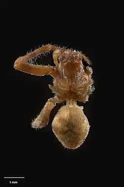 The female is recorded at 4.84mm in length. The carapace and legs are dark reddish brown. The abdomen is cream with a dark patch dorsally.[1]