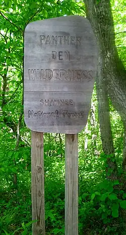 The Panther Den Wilderness is a 1,195-acre (4.84 km2) parcel of land listed as a Wilderness Area of the United States. It is located within the Shawnee National Forest in Union County in the U.S. state of Illinois.[1] Panther Den Wilderness is the smallest of eight Wilderness areas in Illinois. The other seven are Bald Knob Wilderness, Bay Creek Wilderness, Burden Falls Wilderness, Clear Springs Wilderness, Crab Orchard Wilderness, Garden of the Gods, and Lusk Creek Wilderness.[2] All Illinois Wilderness areas are located in Southern Illinois.