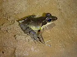 - ^ Oliver, Lauren A.; Prendini, Elizabeth; Kraus, Fred & Raxworthy, Christopher J. (2015). "Systematics and biogeography of the Hylarana frog (Anura: Ranidae) radiation across tropical Australasia, Southeast Asia, and Africa". Molecular Phylogenetics and Evolution. 90: 176–192. doi:10.1016/j.ympev.2015.05.001. PMID 25987527.