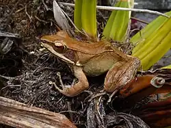 - ^ Oliver, Lauren A.; Prendini, Elizabeth; Kraus, Fred & Raxworthy, Christopher J. (2015). "Systematics and biogeography of the Hylarana frog (Anura: Ranidae) radiation across tropical Australasia, Southeast Asia, and Africa". Molecular Phylogenetics and Evolution. 90: 176–192. Bibcode:2015MolPE..90..176O. doi:10.1016/j.ympev.2015.05.001. PMID 25987527.