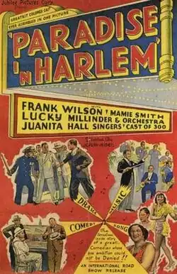 Paradise in Harlem is a 1939 American musical comedy-drama film written by Frank H. Wilson and directed by Joseph Seiden. It was first shown in 1939 starring Frank H. Wilson.[1] It was released by Jubilee Production Co.