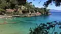 Paraggi is a bay between Santa Margherita Ligure and Portofino. Paraggi beach is a tourist attraction known for its crystal clear blue water. Paraggi beach is a fishing location and a popular attraction for tourists because it is the only sandy beach near Portofino. Most beaches in the area are rocky, and Portofino itself has no beaches, only a beautiful harbor.[1] Paraggi is a public beach, but it also features private beach clubs, as do many other beaches on the Riviera. From the beach, one can see the holiday homes of Dolce and Gabbana and Silvio Berlusconi's son, Pier Silvio Berlusconi.[2]