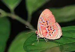 Paralaxita telesia, the common red harlequin, is a species in the butterfly family Riodinidae.