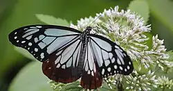 Parantica sita, the chestnut tiger, is a butterfly found in Asia that belongs to the crows and tigers, that is, the danaid group of the brush-footed butterflies family.