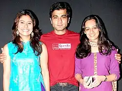 ![]() Telang (on left) with Santosh Juvekar (center) and Spruha Joshi. | |