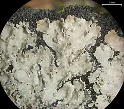 Parmeliella is a genus of lichen-forming fungi in the family Pannariaceae. It occurs mainly in the tropics and subtropics, with species found in Africa, Asia, Australasia and South America.[1] These lichens form small, leaf-like or crusty patches that are often anchored by blue-black fibres, and they partner with nitrogen-fixing cyanobacteria. The genus was established in 1862 by the Swiss lichenologist Johannes Müller Argoviensis, who distinguished it from related genera by the structure of its fruiting bodies.