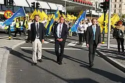The party was founded as Folkfronten ("the people's front") in November 2008 by members of the defunct National Socialist Front.[7] The name of the party was changed in 2009 to avoid confusion and loss of votes in the 2010 election. When the party filed an application to the Election Authority of Sweden, it became apparent that a newly established socialist group had been registered under the same name only weeks before to block its use.[8]