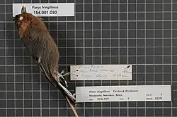 - ^ Johansson, U.S.; Ekman, J.; Bowie, R.C.K.; Halvarsson, P.; Ohlson, J.I.; Price, T.D.; Ericson, P.G.P. (2013). "A complete multilocus species phylogeny of the tits and chickadees (Aves: Paridae)". Molecular Phylogenetics and Evolution. 69 (3): 852–860. doi:10.1016/j.ympev.2013.06.019. PMID 23831453.