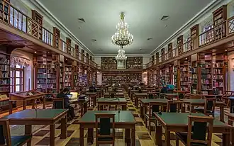 The Pashkov House (Russian: Пашко́в дом) is a neoclassical mansion that stands on a hill overlooking the western wall of the Moscow Kremlin, near the crossing of the Mokhovaya and Vozdvizhenka streets. Its design has been attributed to Vasily Bazhenov. It used to be home to the Rumyantsev Museum—Moscow's first public museum—in the 19th century. The palace's current owner is the Russian State Library.