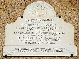 Commemorative plaque to Paoli at the monastery of Saint Anthony of Casabianca.