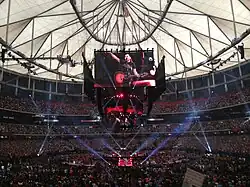 In 2017, Passion held its annual collegiate event in Atlanta's Georgia Dome, former home of the Atlanta Falcons before renovations.[23] That year, Passion encouraged participants to sponsor more than 7,000 children from Compassion International.[24] The conference also saw the debut of sixsteprecords artist Jimi Cravity[25] and the appearance of country music singer Carrie Underwood, which incited backlash from some right-wing Christian fundamentalists.[26][27][28][29]