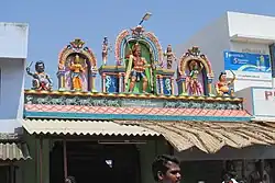 On an ordinary day, visitors could see all the mounts of the deities parked inside the temple premises in the pillared halls. visitors could also see permanent huge pillars cut out of single granite rocks standing in front of the temple as it serves to put huge pandal in front of the temple during festivities. These pillar rocks are very old and few of them has paved way to concrete pillars.