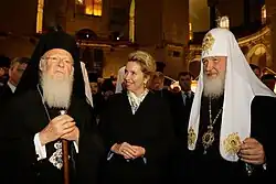 Among his many international positions, he currently sits on the Board of World Religious Leaders for the Elijah Interfaith Institute.[22] In 2018, the Moscow Patriarchate broke communion with the Ecumenical Patriarchate as a result of disputes over his decision to grant autocephaly to the Orthodox Church of Ukraine.[23][24]