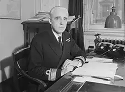 ![]() Rear Admiral Brind at his desk at the Admiralty, c. 1942–44 | |