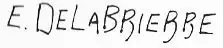 Although his full name was Paul-Édouard Delabrièrre, he almost always signed his sculptures as "E. Delabrierre" in block or semi-block type letters. Occasionally he signed as simply "Delabrièrre" as in the case of a two-humped camel bronze he completed in 1849.[6] The "R" that he used in his signature did not always feature as sharp a curve to the left as shown in signature example No. 1 (above left).[3]