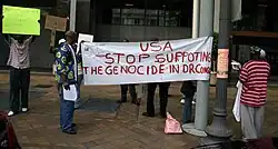 Although Kagame's primary reason for the two wars in the Congo was Rwanda's security, he was alleged to gain economic benefit by exploiting the mineral wealth of the eastern Congo.[139] The 2001 United Nations Report of the Panel of Experts on the Illegal Exploitation of Natural Resources and Other Forms of Wealth of the Democratic Republic of the Congo alleged that Kagame, along with Ugandan President Museveni, were "on the verge of becoming the godfathers of the illegal exploitation of natural resources and the continuation of the conflict in the Democratic Republic of the Congo".[140] The report also claimed that the Rwandan Ministry of Defence contained a "Congo Desk" dedicated to collecting taxes from companies licensed to mine minerals around Kisangani, and that substantial quantities of coltan and diamonds passed through Kigali before being resold on the international market by staff on the Congo Desk.[141]