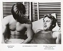 While filming a scene in John Wilcock's Manhattan apartment for Warhol's 25-hour movie Four Stars, Morrissey first met Joe Dallesandro, who had friends who lived in the same building.[16] Morrissey immediately cast him in a scene in Loves of Ondine (1967), Dallesandro's first appearance in a Factory film.[17]