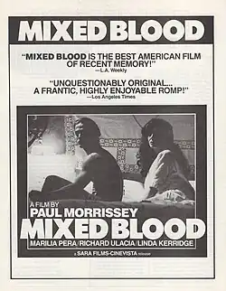 Returning to New York City in the early 1980s, Morrissey began a collaboration with playwright and screenwriter Alan Bowne, directing a film version of his 1981 play Forty Deuce (1982) starring Orson Bean and Kevin Bacon.[27] Morrissey worked again with Bowne on the screenplays for Mixed Blood (1984) and Spike of Bensonhurst (1988), completing a trilogy of films taking a satirical, empathetic look at the political, social and moral decay of New York City and its outer boroughs during the Ed Koch years.[28]