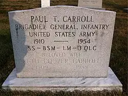 Carroll was promoted to brigadier general on July 24, 1953. He died on duty of a heart attack in Washington on September 17, 1954, at age 44, and is buried in Arlington National Cemetery.[26]
